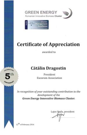 - Membra a COGEN Europe de mai bine de 10 ani contribuind atit la Legislatia Europeana a tehnologiei de cogenerare, ca instrument de eficienta energetica, cit si la promovarea tehnologiei de cogenerare in Romania, atit pe combustibili fosili cit si mai ales pe resurse regenerabile.