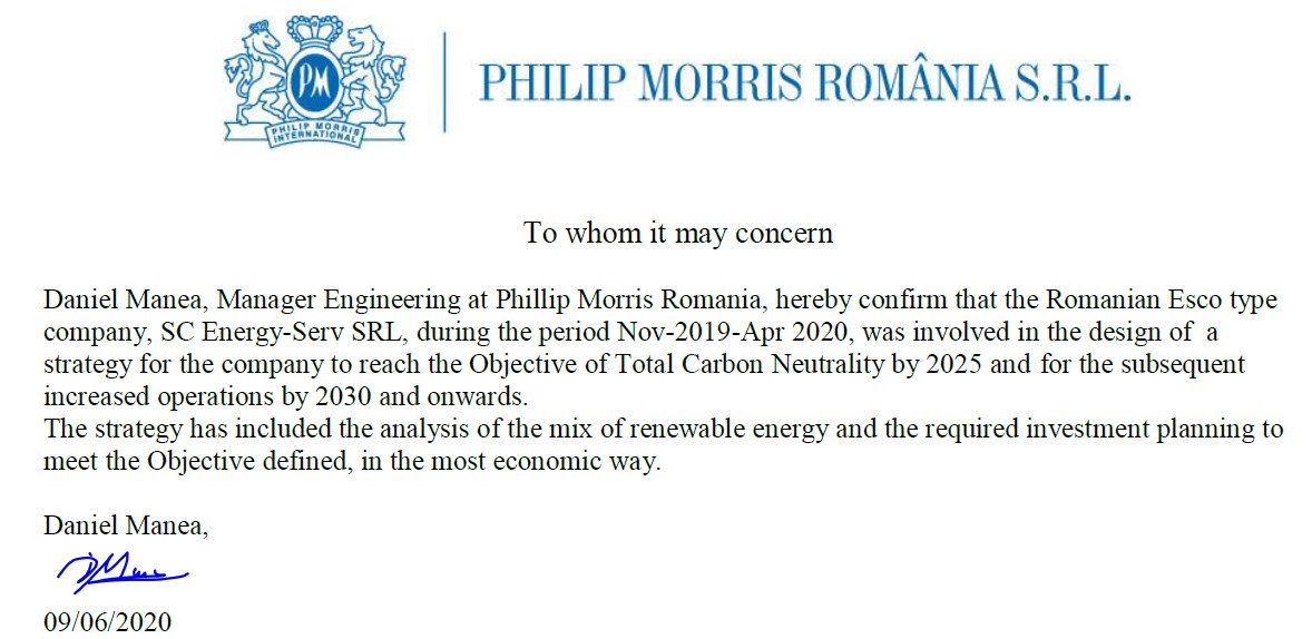 | 1 | PHILLIP-MORRIS INT’L (Studiu) | Strategia de decarbonare 2020-2030 | 2019/2020 |