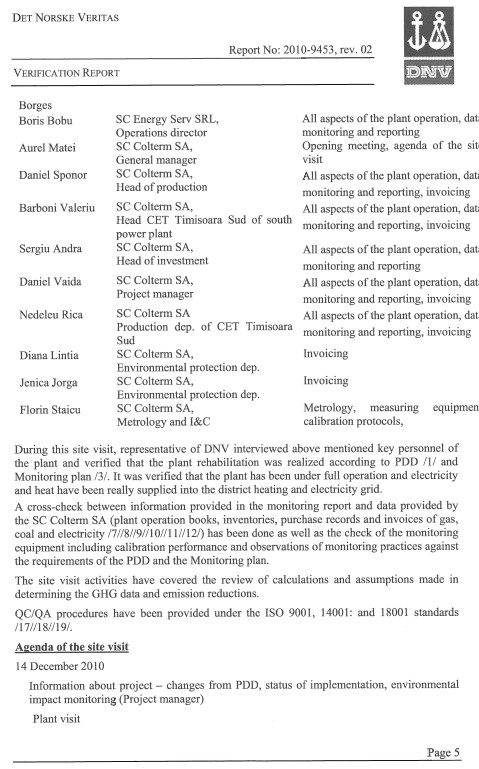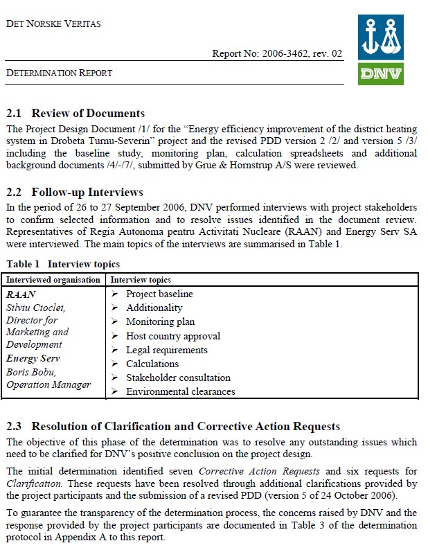 (reducere emisii de CO2, urmare eficientei crescute si vinzare catre Guv.Danemarcei)